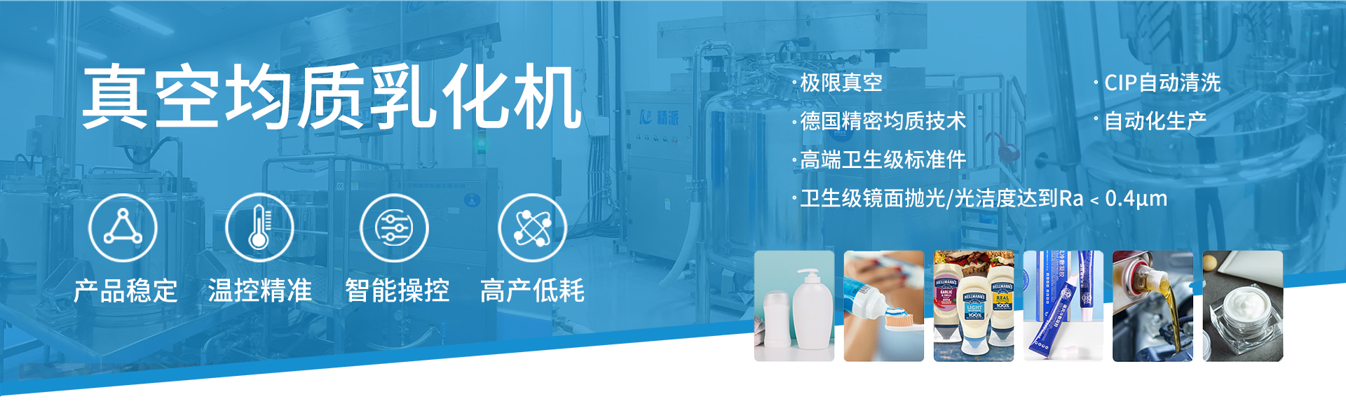 無錫精派機械成立于2009年,是一家高科技乳化 灌裝包裝生產線解決方案集成供應商,致力于用 戶合規(guī)化、高效化、智能化產業升級。應用行業 包括制藥醫療、寵物醫療、日化護理和醫院等。 應用產品涵蓋水劑、膏劑、凝膠、液體制劑、粉 劑、注射劑等非無菌和無菌產品。